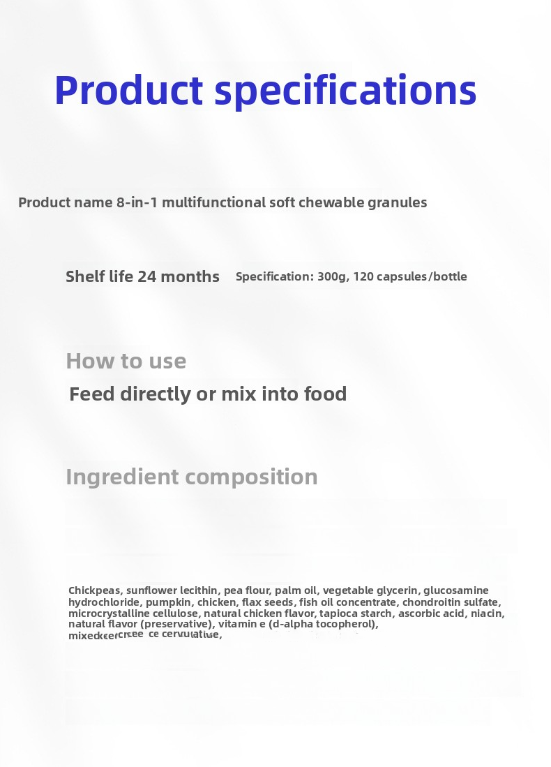 Multifunctional multivitamin soft granules for pets 8-in-1 multivitamin chondroitin nutritional supplement